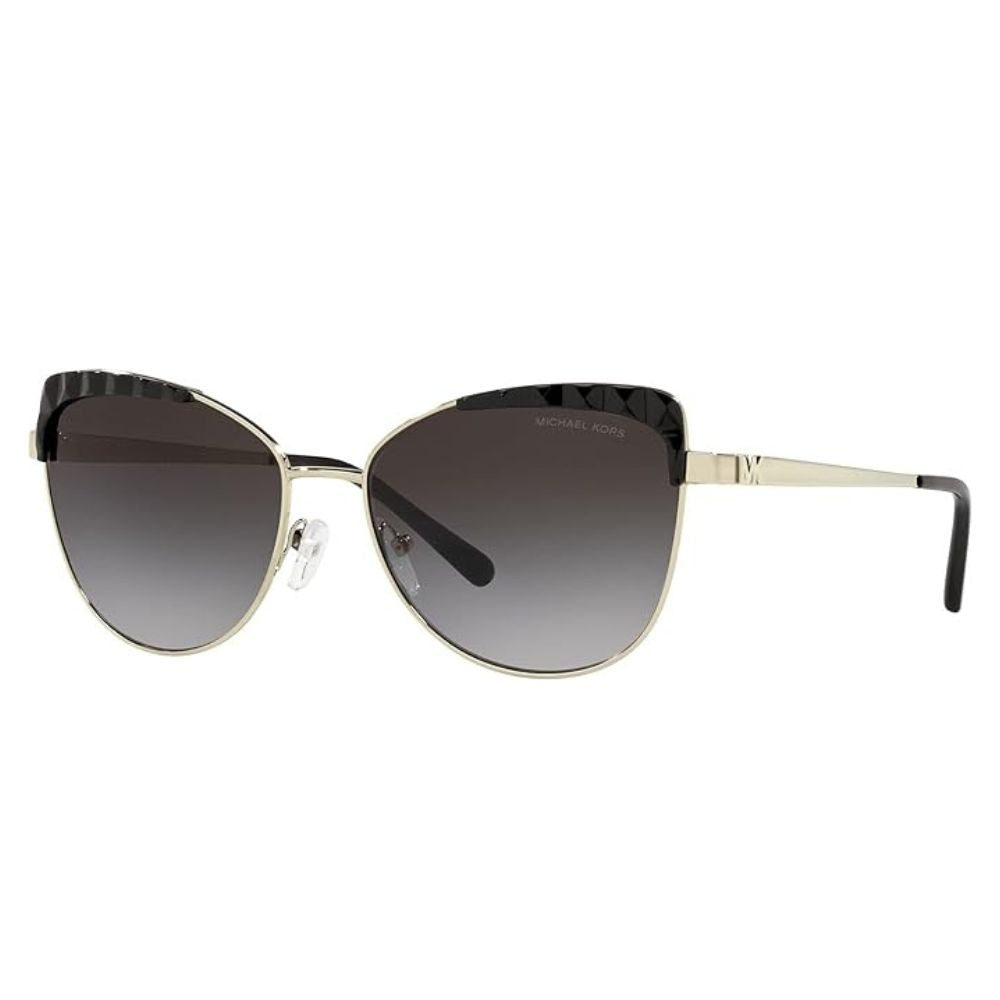 استمتعي بلمسة من الأناقة والفخامة مع نظارة مايكل كورس الشمسية النسائية، المصممة بإطار كات أي المميز. تتألق هذه النظارة بإطارها الذهبي المصنوع من المعدن العالي الجودة وعدساتها السوداء التي توفر حماية فائقة من أشعة الشمس. مثالية لكل امرأة تبحث عن إضافة لمسة من السحر والجاذبية إلى إطلالتها. تألقي في كل وقت مع هذا الاختيار الأنيق.